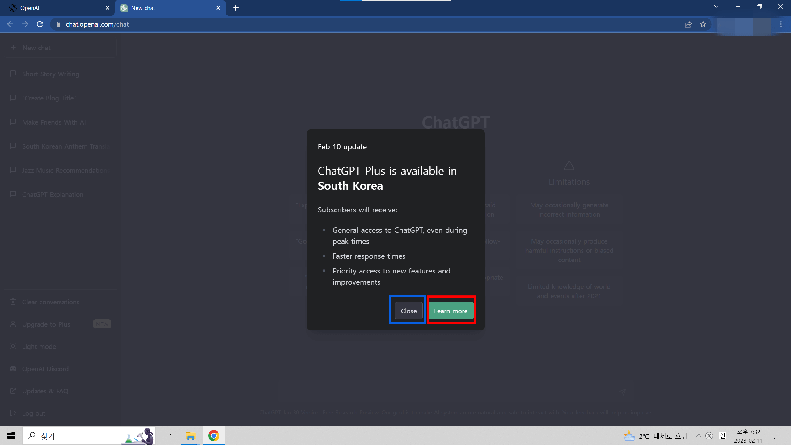 * 23. 2. 11 ChatGPT 유료 버전이 공개되어 내용을 추가합니다.