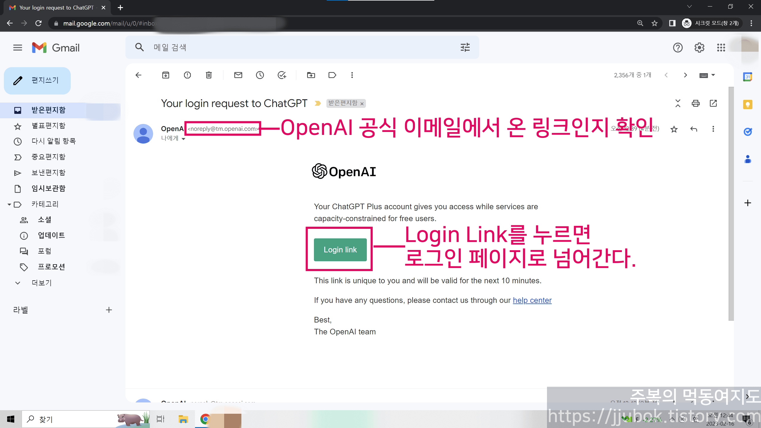 * 주의 : 이메일 발신주소가 피싱 메일일수도 있으니 noreply@tm.openai.com 인지 꼭 확인하고 눌러주시길 바랍니다.