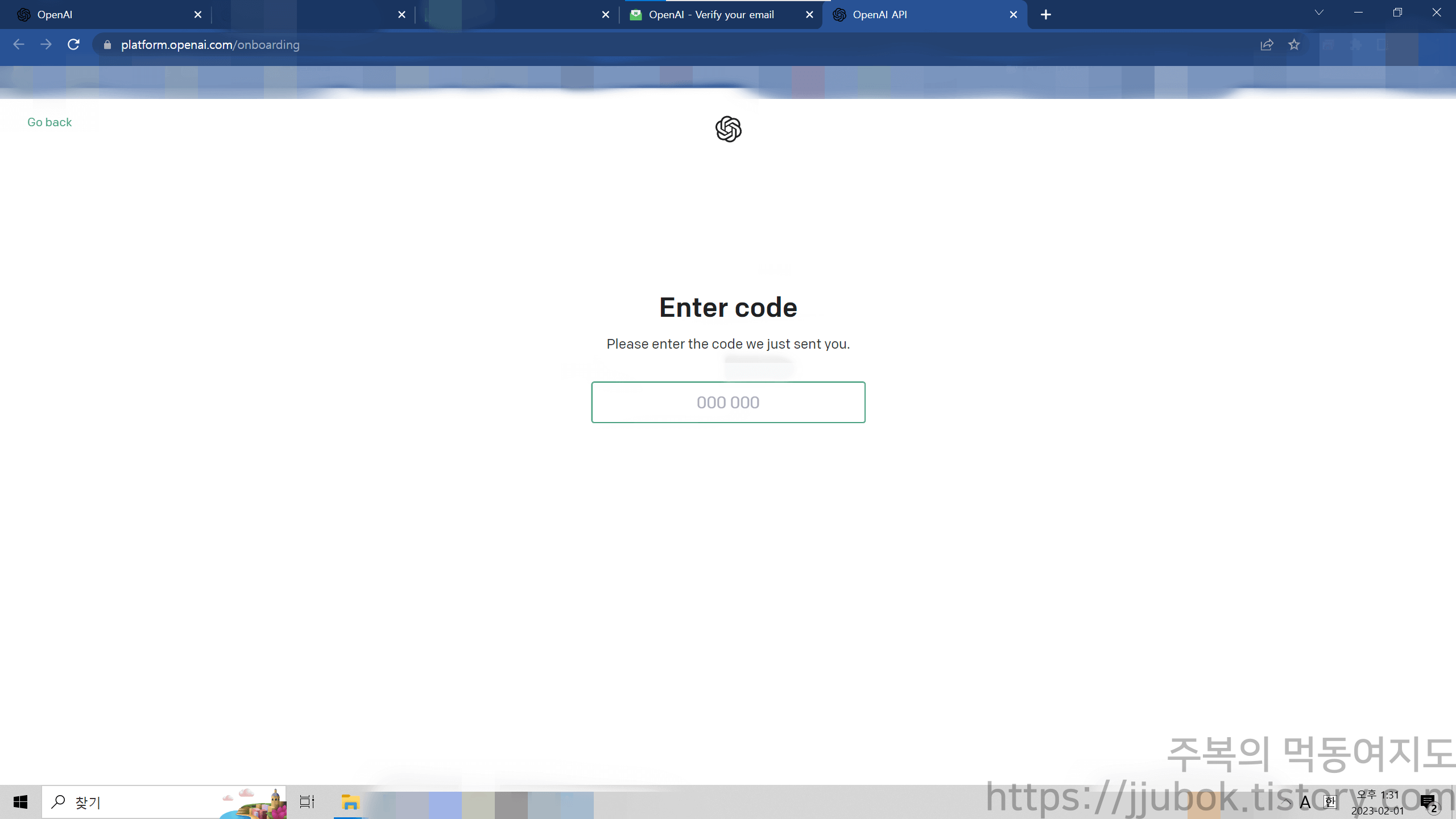 1. 자신이 OpenAI에 가입했던 이메일 주소를 적어서